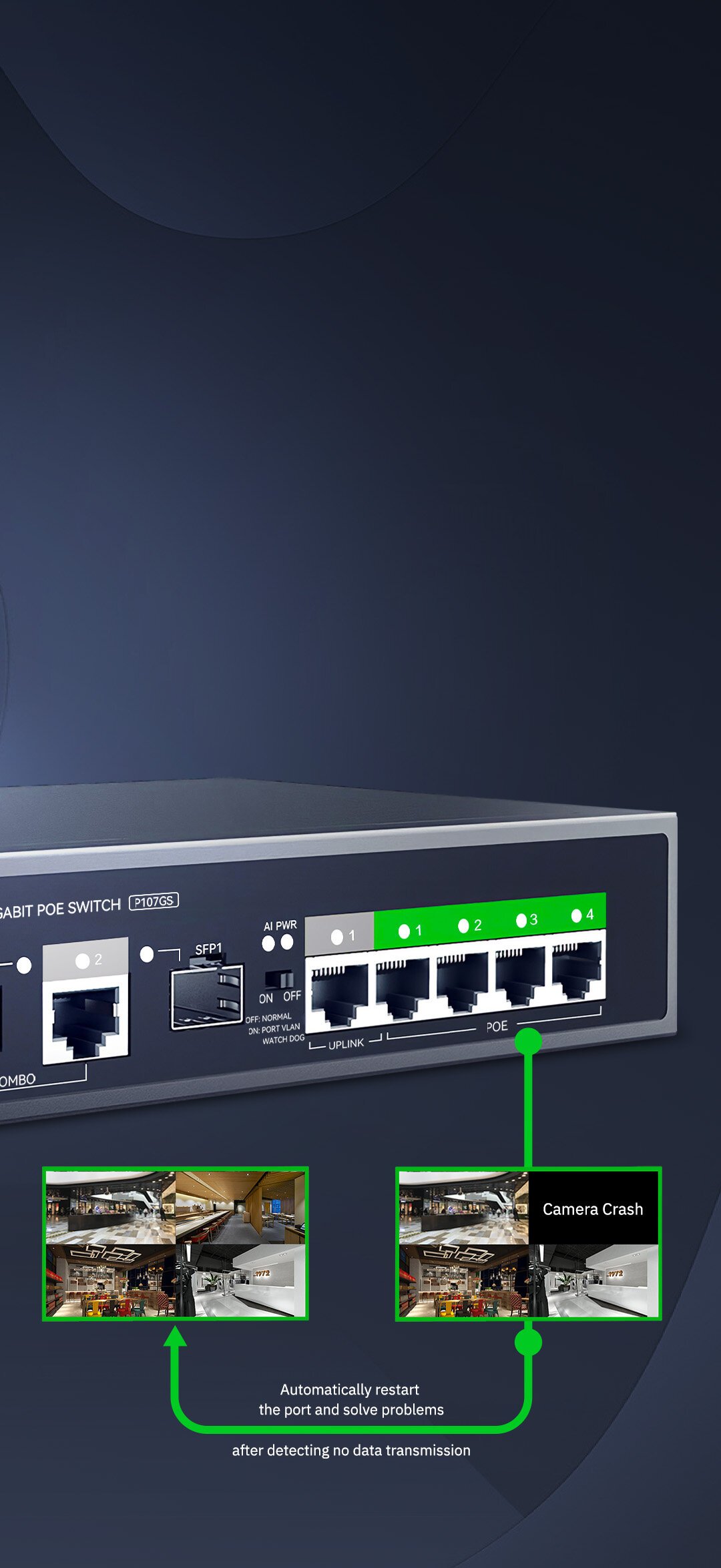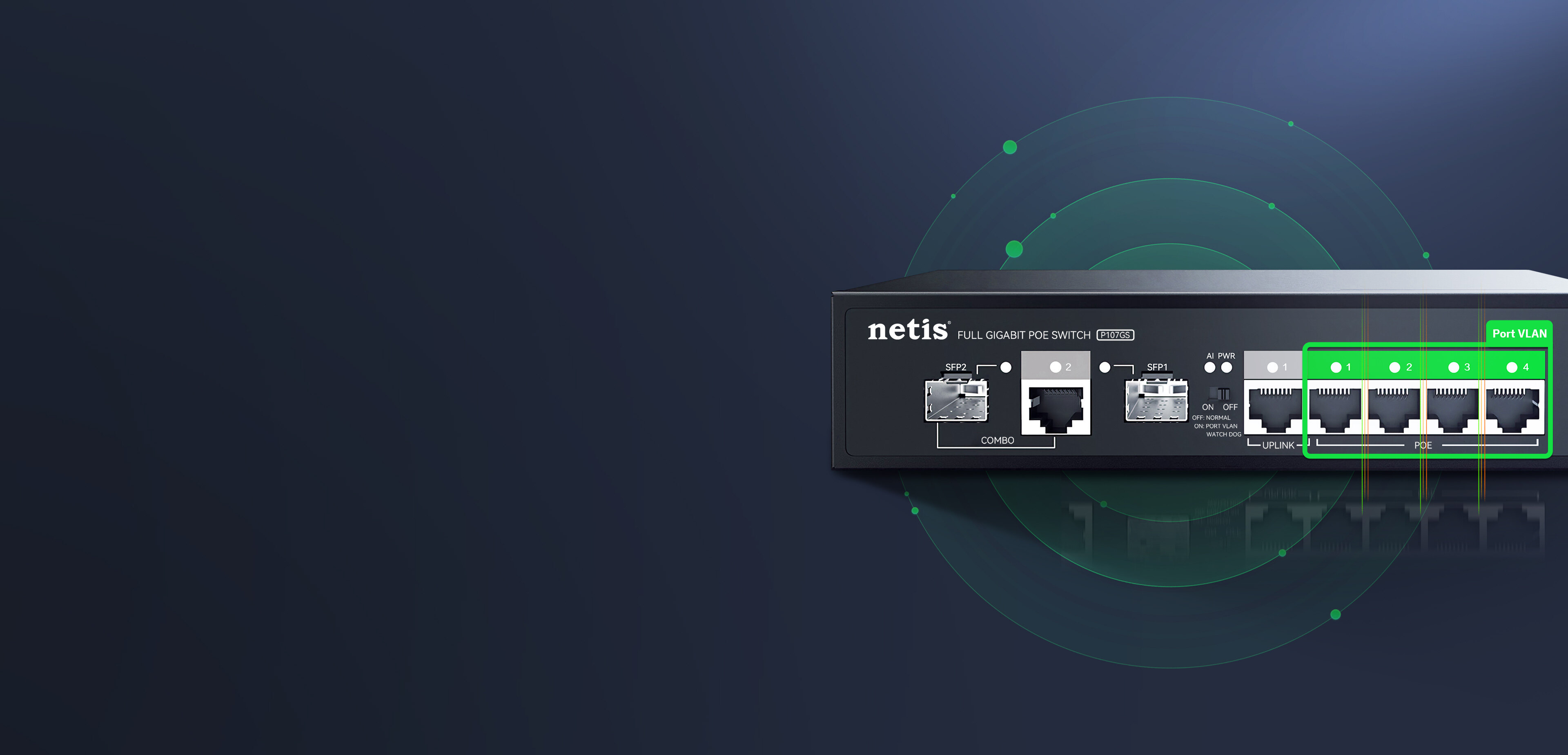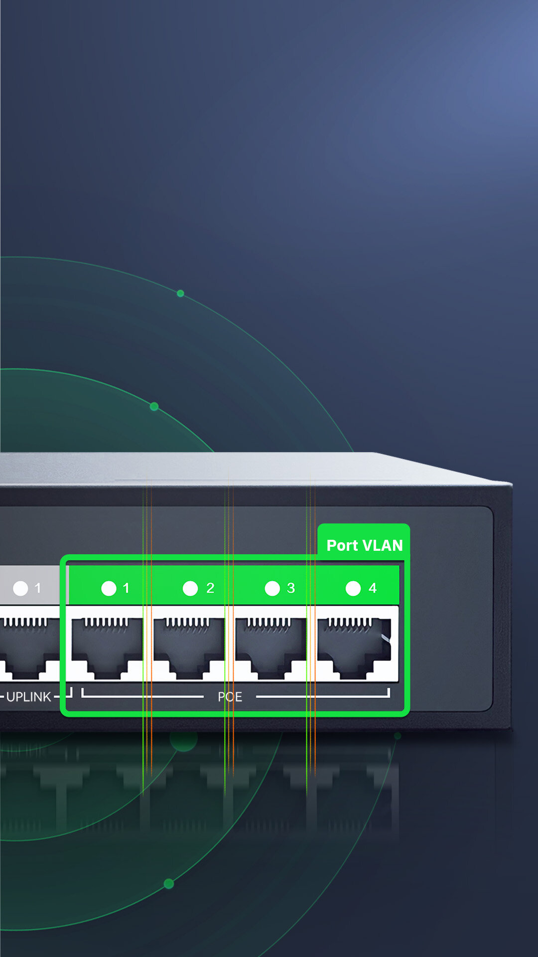 A button to start All POE port VLAN, no more data transmission interference. No connection among each port, protect the privacy of connected devices