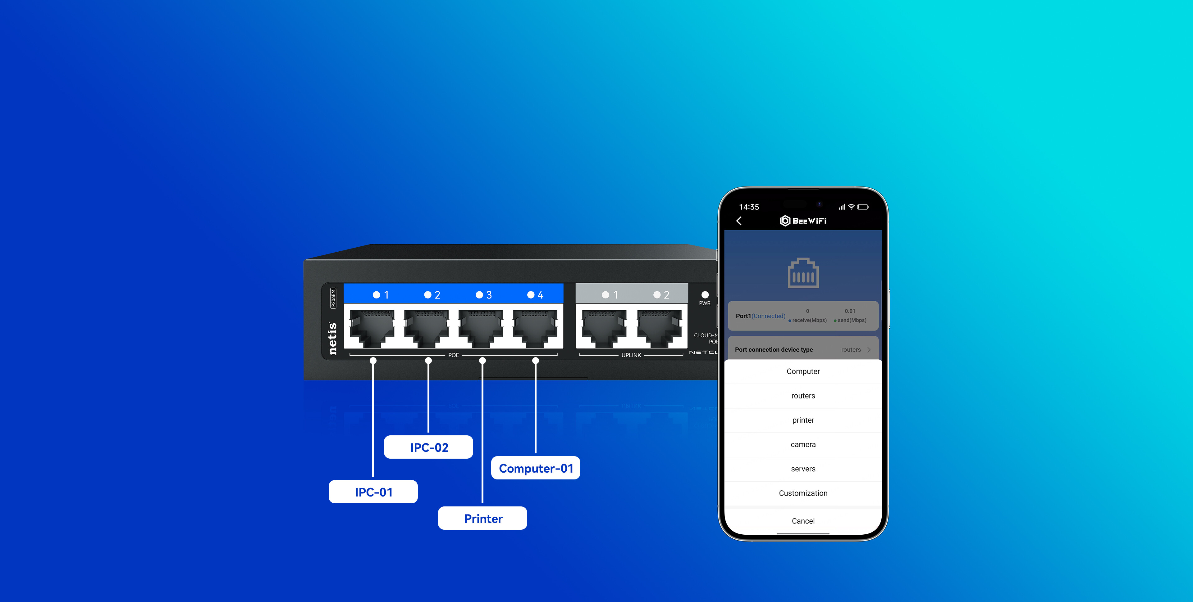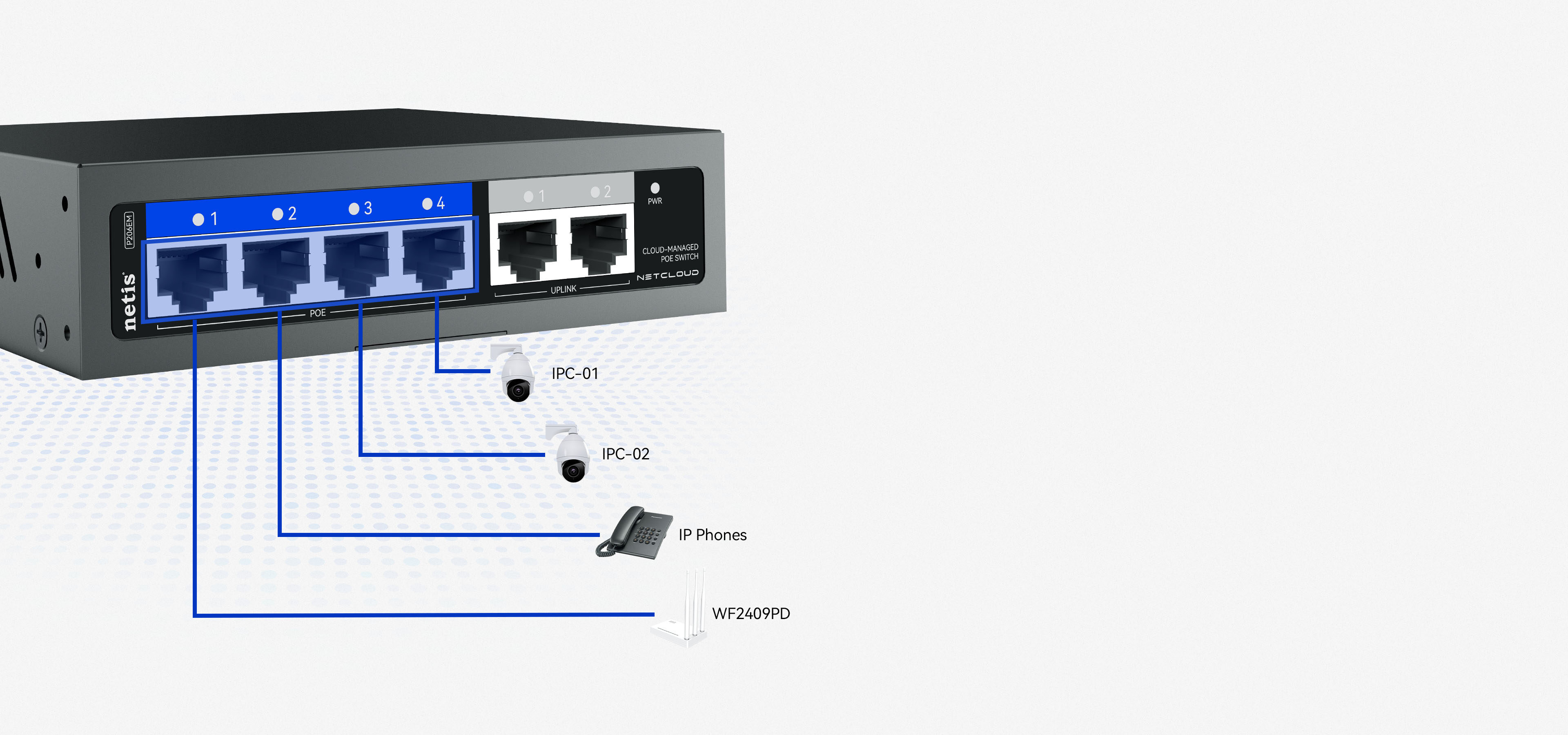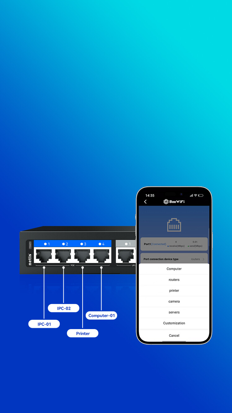 4*10/100Mbps POE Ports(Data/Power) 2*10/100Mbps RJ45 Ports(Data) |