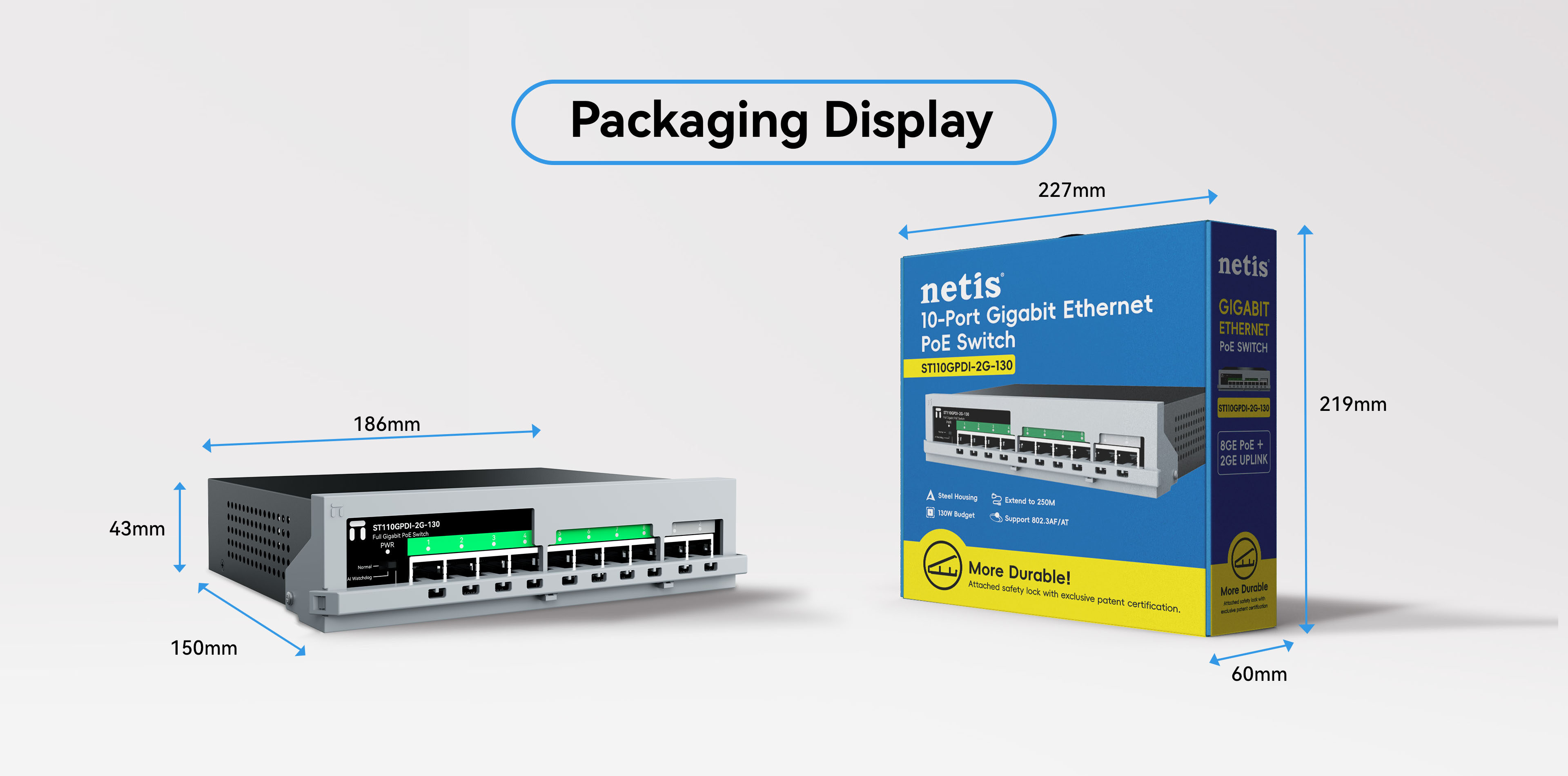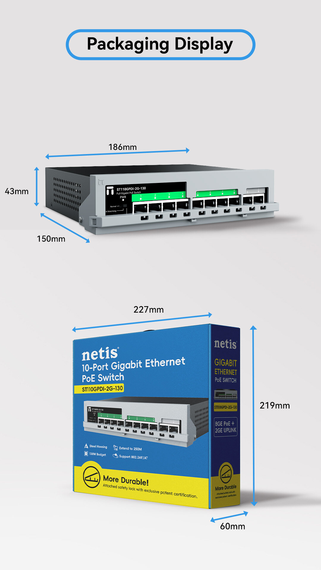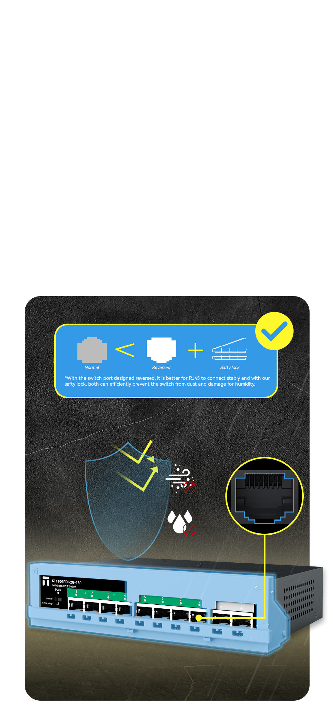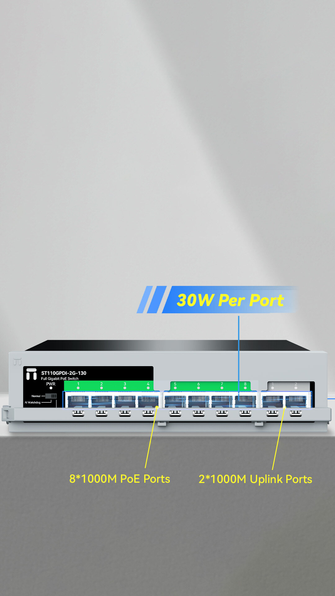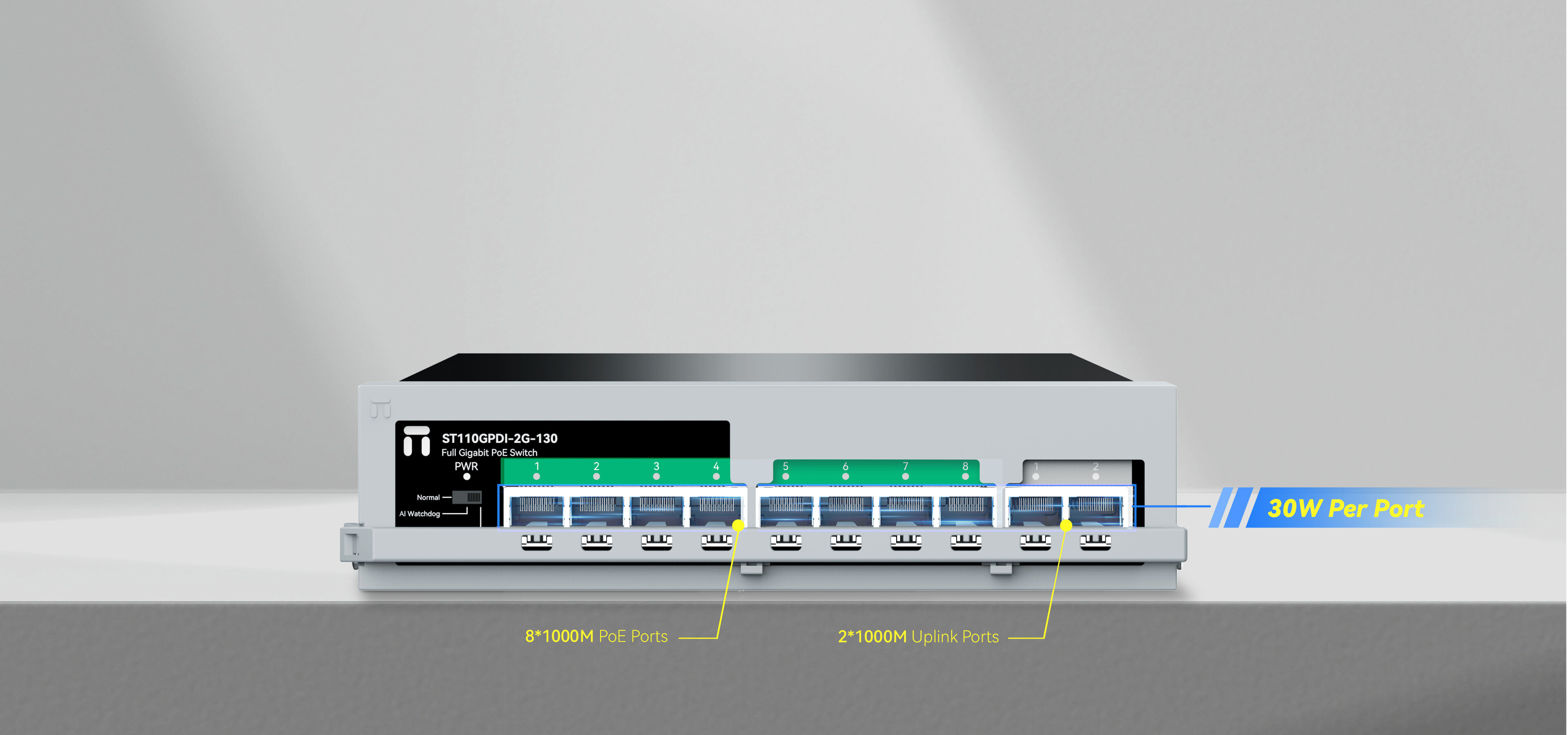 8*1000Mbps POE ports 2*1000Mbps uplink ports |