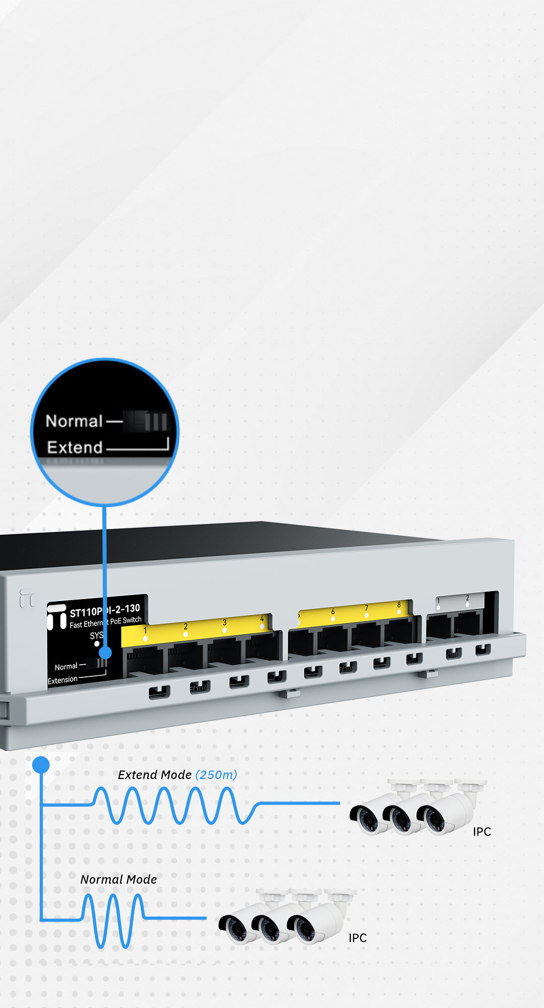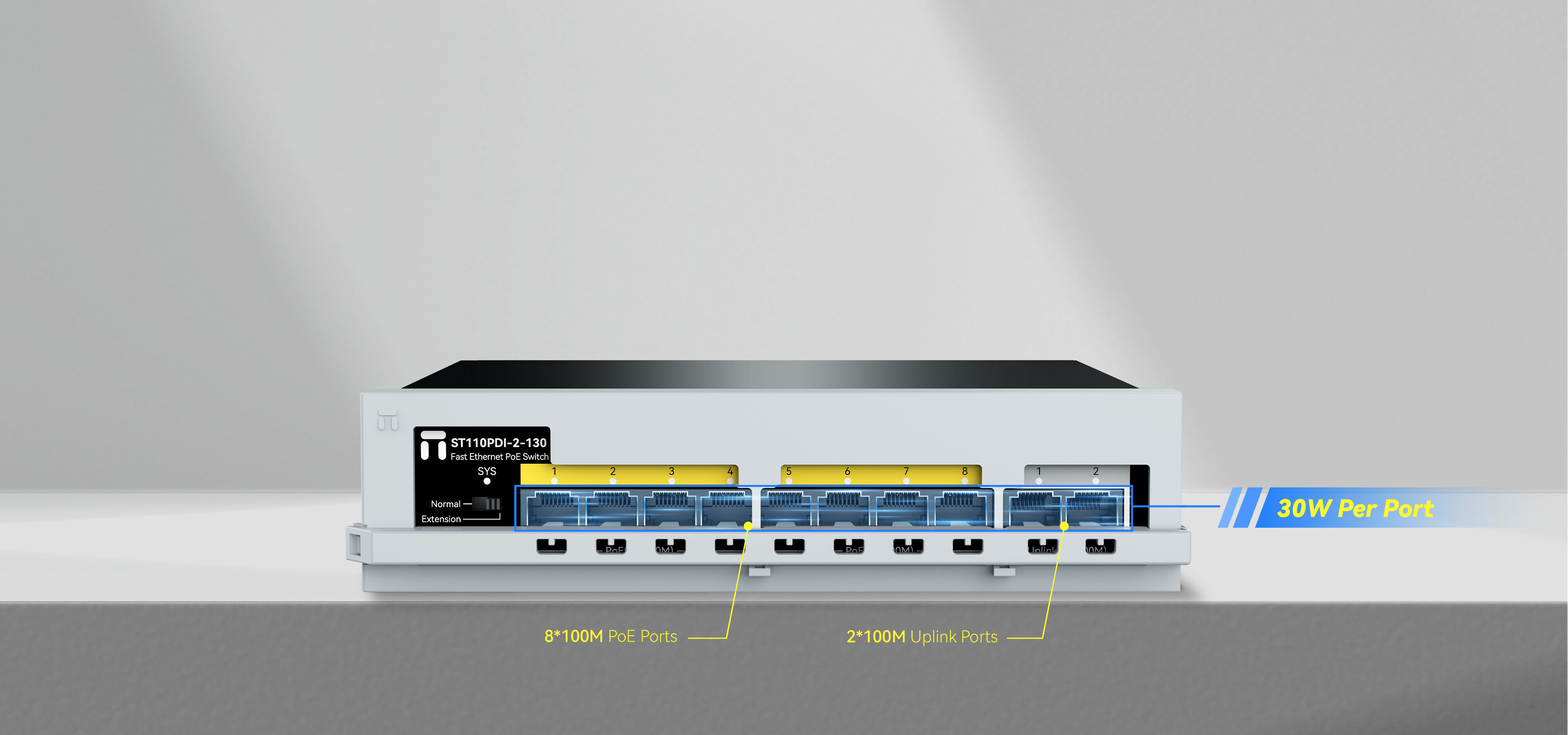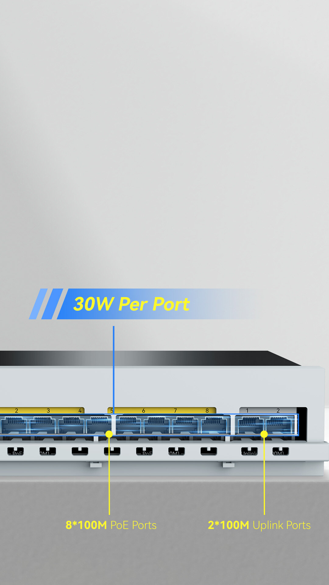 8x100Mbps POE ports + 2x100Mbps uplink ports |