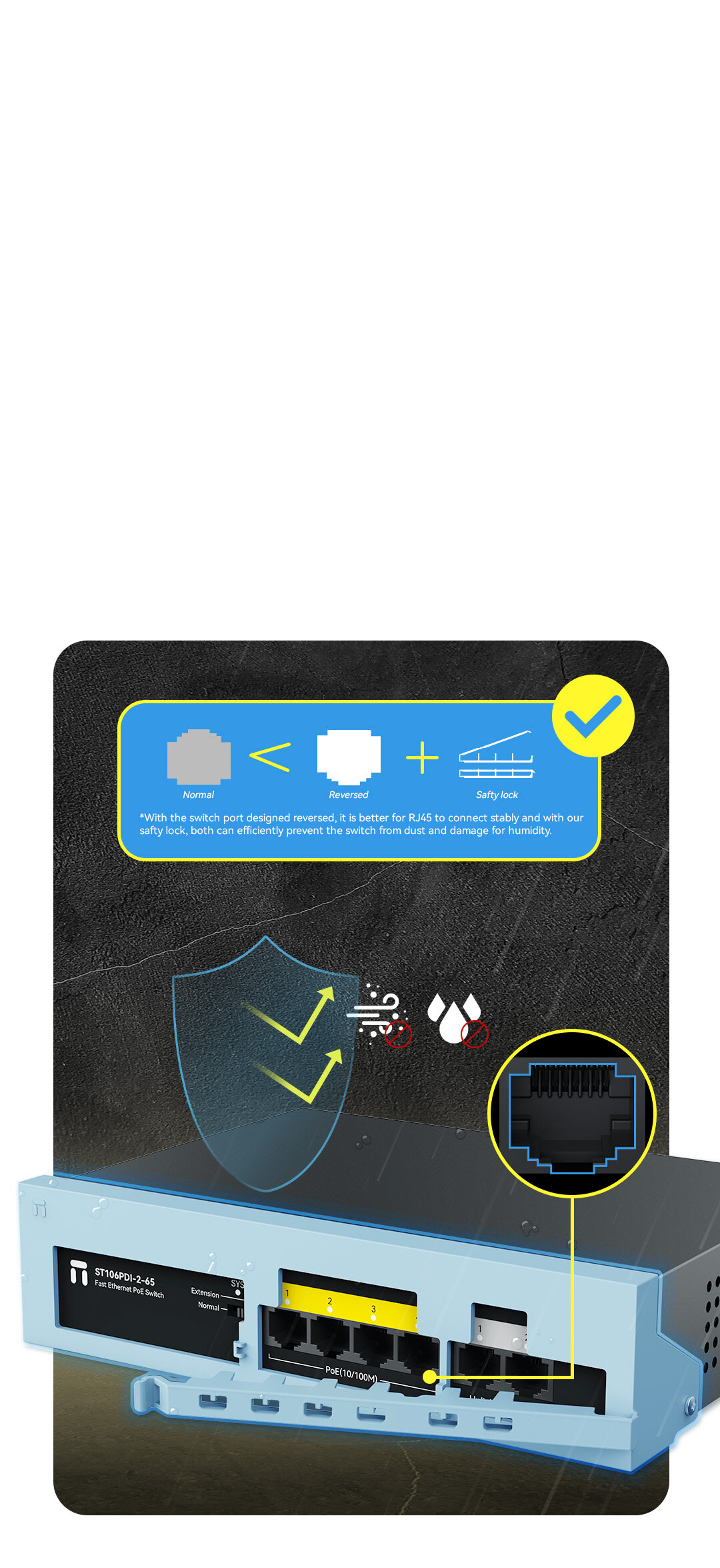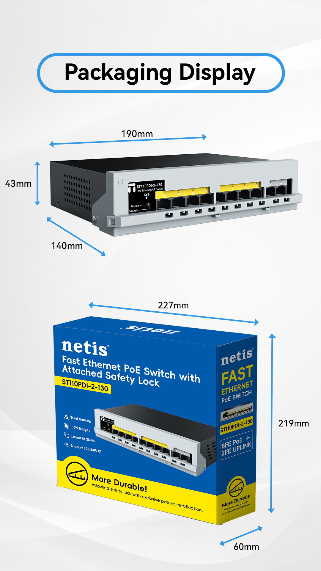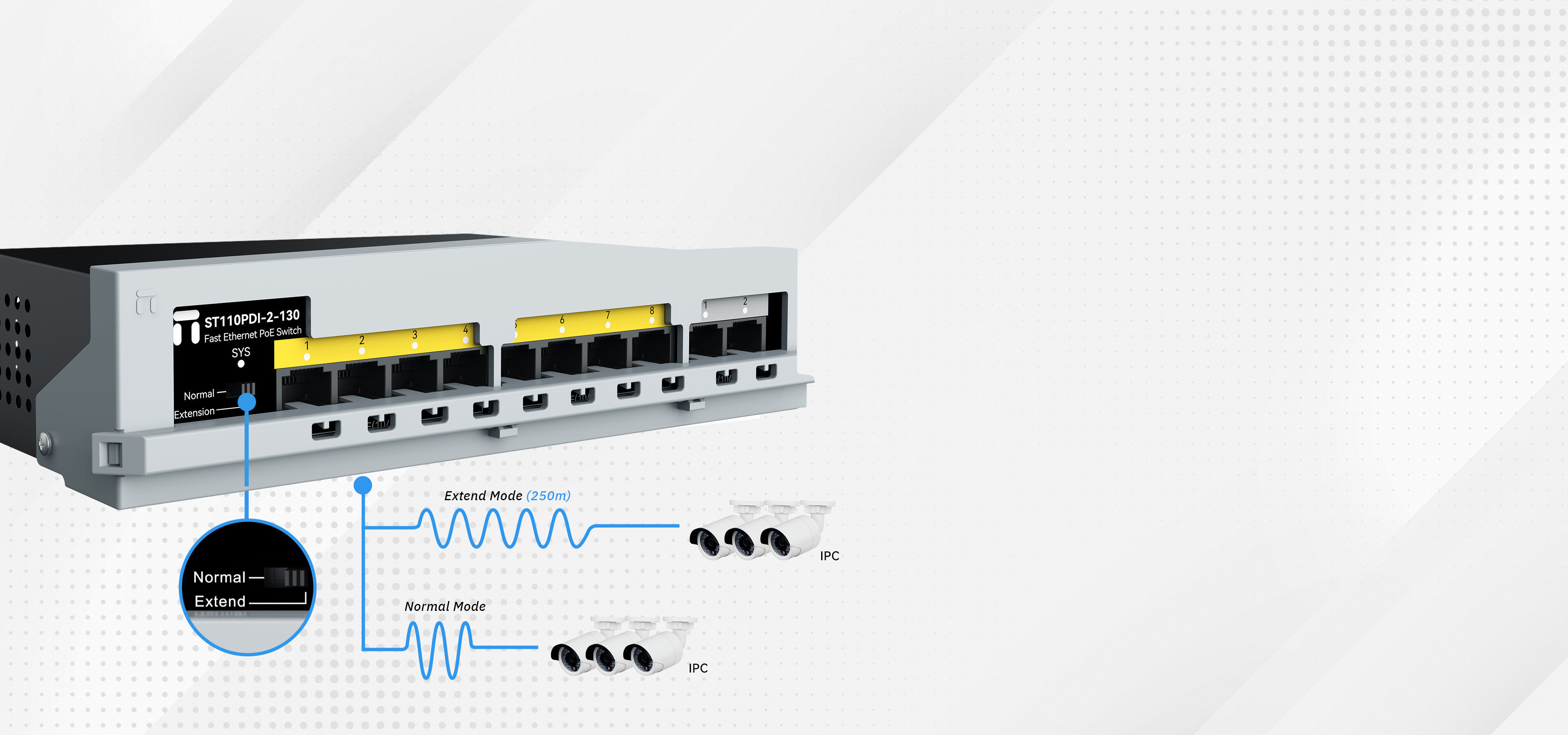 8x100Mbps POE ports + 2x100Mbps uplink ports |